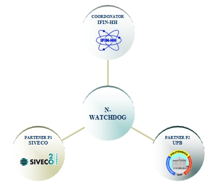 Consortiul implicat in realizarea obiectivelor proiectului N-WATCHDOG este format din: Institutul National de Cercetare-Dezvoltare pentru Fizica si Inginerie Nucleara "Horia Hulubei" in calitate de coordonator, precum si din SIVECO Romania si Universitatea Politehnica din Bucuresti in calitate de parteneri.