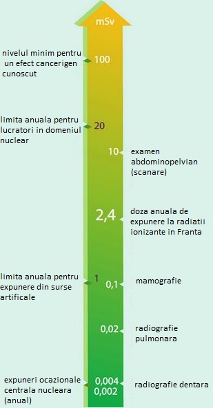 Pentru populație, limita anuală de expunere de 1 mSv si se aplică drept suma a dozelor in afara radioactivitatea naturală și medicina.