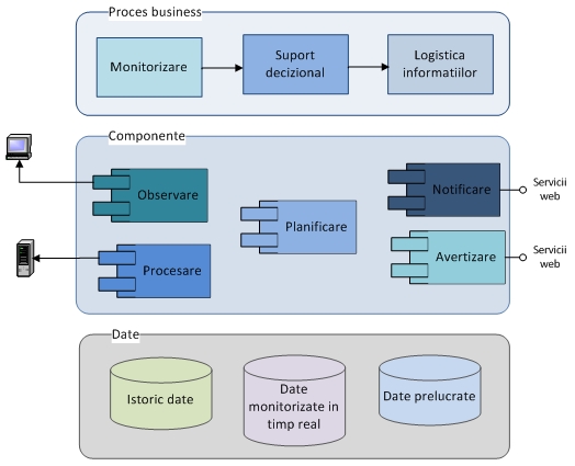 Arhitectura sistemelor de avertizare timpurie trebuie sa fie flexibila si adaptabila, astfel incat functionalitatile sale (alertare, observare, planificare, notificare, procesare) sa fie grupate in jurul unui flux de lucru tipic, ce consta din: monitorizare, suport decizional si logistica informatiilor; programele puse la dispozitie pot fi incapsulate ca servicii standardizate si interoperabile.